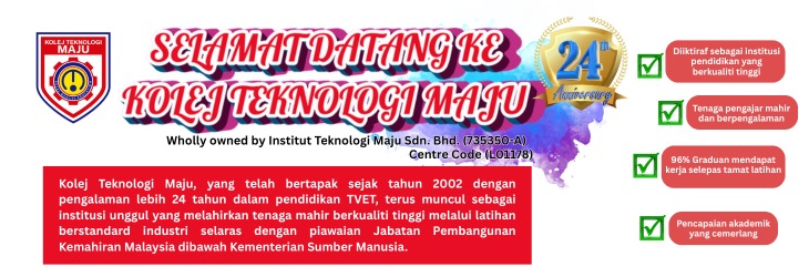 Kolej Teknologi Maju’sobjective is to provide skills and technical education to create skilled labours for achieving our country’s vision on turning Malaysia into an industrialized nation. Our vision is to provide skills training to meet the industrial needs. Our mission is to empower skills training through implementation of effective management and courses.
